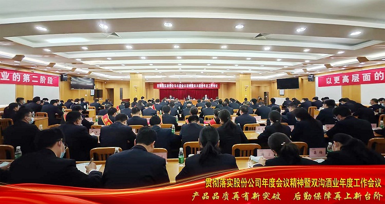 2023-02-21揚帆啟航新征程,踏浪前行向未來。2月21日上午8點18分,公司在辦公樓西二樓會議室召開貫徹落實股份公司年度會議精神暨雙溝酒業年度工作會議。股份公司副總裁、公司黨委書記、總經理李玉領對股份公司年度會議精神進行宣貫落實,并全面部署雙溝酒業2023年工作,公司黨委副書記耿忠祥總結回顧2022年工作成績,公司副總經理崔鳳元主持會議,各部門、車間及派駐機構中層助理以上人員、班科長代表和受表彰的單位、員工代表參加會議。